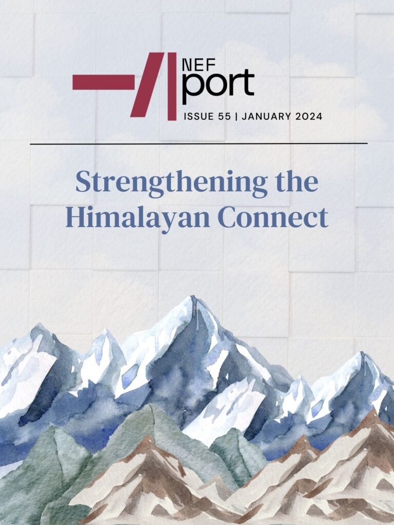 The 55th edition of Nefport, “Strengthening the Himalayan Connect” special, comprises of selected proceedings and addresses from the inaugural meet of the Himalayan Future Forum(HFF). HFF is an incubation center of the Nepal Economic Forum(NEF) that aims to serve as a platform to encourage multi-faceted dialogues on the Himalayas by bringing in together stakeholders from different countries and sectors. This issue of Nefport takes into account news updates from 1 September to 31 November 2023.